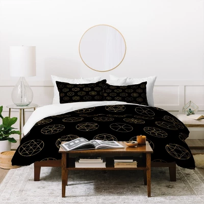 Turn your basic, boring down comforter into the super stylish focal point of your bedroom with the Deny Designs Black Florent Bodart Geo Circles Golden duvet set. Our lightweight duvet is made from an ultra soft lightweight woven polyester fabric with an art printed top side. Our duvet cover includes a hidden zipper with interior corner ties to secure your comforter. It’s comfy, fade resistant, machine washable and custom printed for every order. The King and Queen come with a duvet cover and two pillow shams, the Twin comes with a duvet cover and one pillow sham.