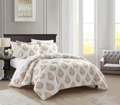 Chic Home Amelia 7 Piece Duvet Cover Set Floral Medallion Print Design Bed In A Bag Bedding With Zipper Closure Taupe