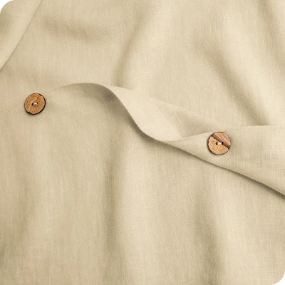Linen bedding has a light, luxurious feel, yet they are strong and durable. The texture will become softer to the touch and will develop a glossiness or sheen over time as you wash it. Bare Home’s Linen Duvet Cover Set is OEKO-TEX Standard 100 certified free of toxic chemicals making it skin-friendly. Made from flax, natural linen duvet covers are recyclable and eco-friendly. Linen bedding is breathable, moisture-wicking, and naturally temperature regulating, meaning perfect comfort for both warm and cool sleepers year-round. Our Duvet Cover features interior corner ties to keep everything secure. Envelope closures on Pillow Shams hold pillows in place for a clean finish. Faux coconut button closures elevate the appearance of your bedding.
